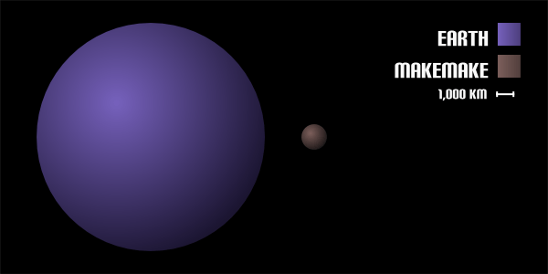Two more dwarf planets orbit the Sun and are in the icy zone beyond Neptune Makemake and Haumea. Sometimes, Makemake, Haumea and Pluto are called “Plutoids” or “Ice dwarfs”, because they orbit that icy belt beyond Neptune, and of course because of their size.